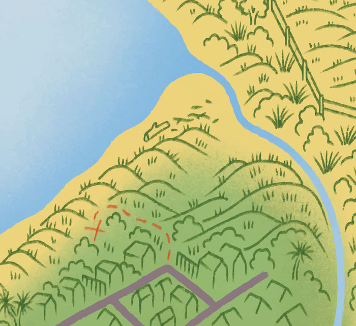 Walk up the path towards the beach from the Konini St entrance. Just before you get to the beach turn to your left (south) and see if you can spot the hut. Taking care to avoid the spikey wiwi, head off track and make your way to the hut. You may see a track where others have walked, give it a try.